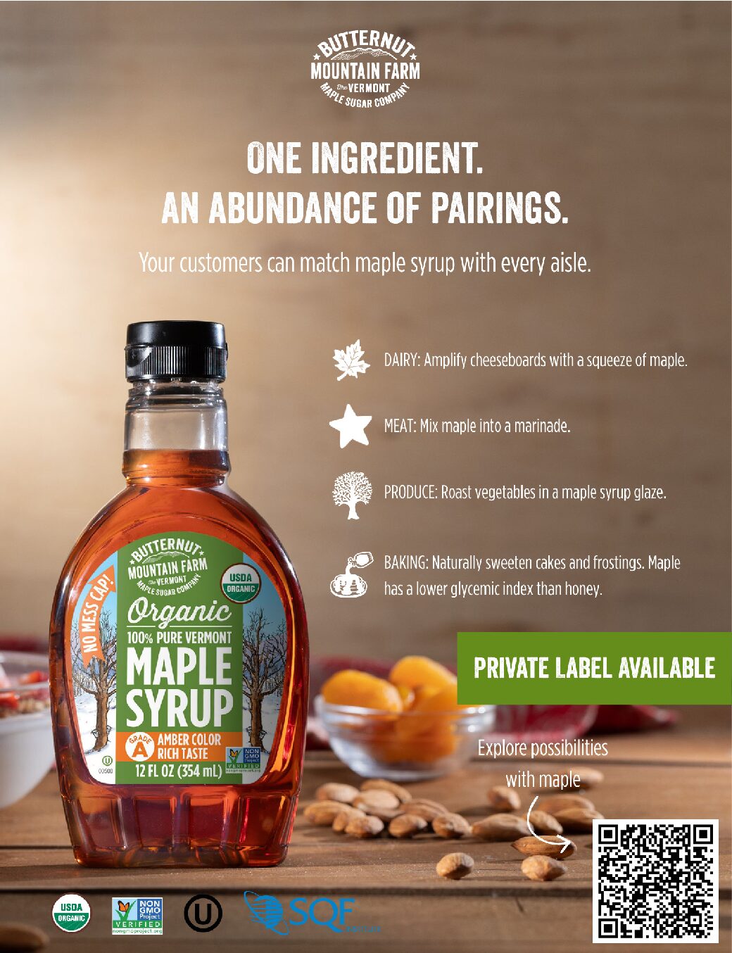Previously, Coombs described, “Retailers are working with us to cross-promote maple to increase the usage. By law, pure maple can’t be altered and still be pure maple, so innovation comes from additional uses in cooking, baking and sauces. I’m impressed by how creative consumers can be.”